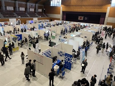 米子高専では、令和6年12月21日(土)に鳥取県立武道館にて「米子高専生のための進路研究セミナー」を開催しました。今年度は237ブース(企業220社、大学及び大学院13ブース・地元自治体等4団体)での実施となり、本校の本科3・4年生、専攻科1年生及び保護者ら約400名が参加しました。