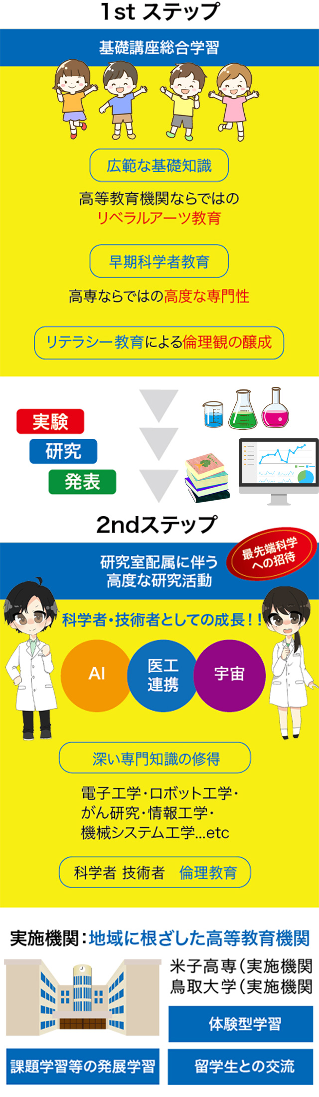米子工業高等専門学校の特徴である地域に根ざした理系進路選択のための早期教育は多くの実績をあげています。