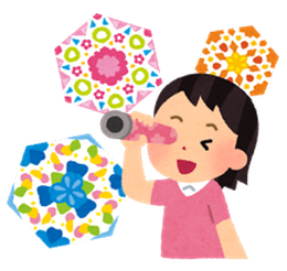 万華鏡の不思議!鏡は無限の世界! 作り方によっていろいろな模様が出来るよ。